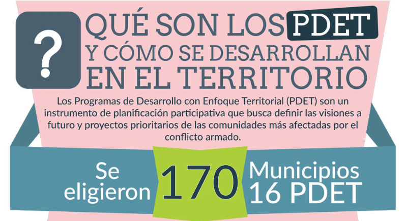 A través de ellos se ponen en marcha con mayor celeridad los instrumentos de la RRI en los territorios más afectados por el conflicto armado, la pobreza, las economías ilícitas y la debilidad institucional.