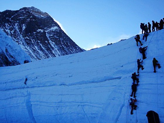 El Everest tiene vida propia, ya no es sólo disfrutar de la montaña, te sientes muy pequeño allí. No lo haría nadie sin la ayuda de los Serpas, que se juegan la vida como porteadores de altura, guiándote de los peligros, llevando mochilas de más de 25 kilos y los hornillos para calentar agua. Gracias a ellos es posible hidratarse y es fundamental porque, aunque no sudas, el líquido se pierde con la respiración por el vapor de agua que exhalas.