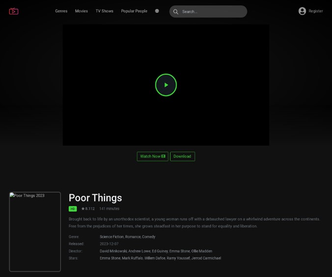 - Webs de streaming falsas. Aprovechando la creciente popularidad de las películas nominadas al Óscar, los estafadores crean páginas web de streaming falsas que prometen un supuesto acceso gratuito al largometraje. Para ello, los usuarios deben registrarse, proporcionando la información de sus tarjetas de crédito y, por tanto, cayendo directamente en la trampa. Una vez comparten los datos personales, los usuarios nunca llegan a recibir el acceso a estas películas, únicamente reciben transacciones no autorizadas y pérdidas financieras.