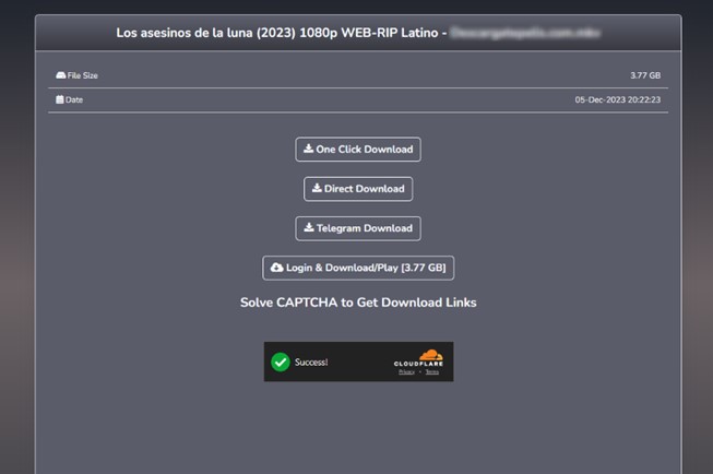 - Descargas de películas falsas. Algunas de estas webs fraudulentas ofrecen la posibilidad de descargar estas películas, lo que también puede ser una trampa de phishing. Estas páginas ofrecen múltiples opciones de descarga, pero al acceder a los enlaces para iniciarla, los usuarios son redirigidos a otra página llena de estafas, como sorteos inexistentes o premios. Interactuar con estas páginas puede llevar a la pérdida de datos personales y activos financieros.