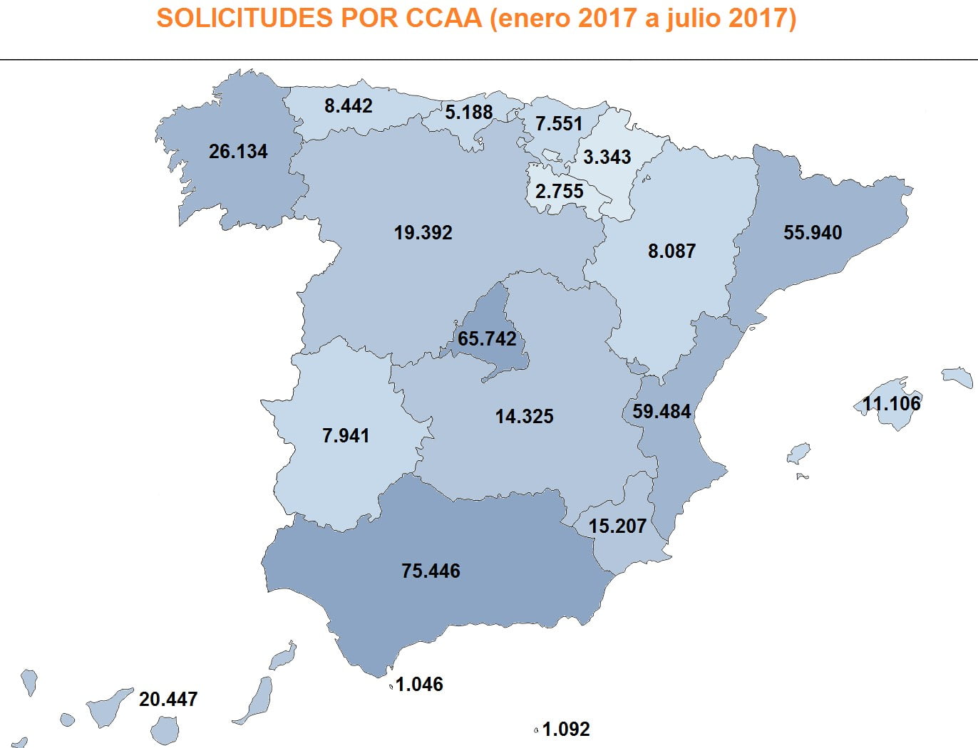 Los datos por comunidades autónomas, nos muestran que el mayor crecimiento corresponde a Castilla y León que con una subida cercana al 12% tramitó de forma electrónica 19.392 solicitudes de Justicia Gratuita. Cataluña, sigue a continuación con casi 56.000 expedientes y un incremento del 10,30% e Islas Baleares con más de 11.100 tramitaciones digitales y un 9,83% más que en 2016.