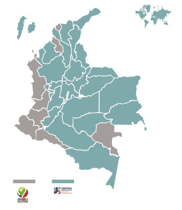 - Iván Duque gana en las regiones del centro, excepto Bogotá, donde tradicionalmente prefieren al ex presidente Álvaro Uribe Vélez.