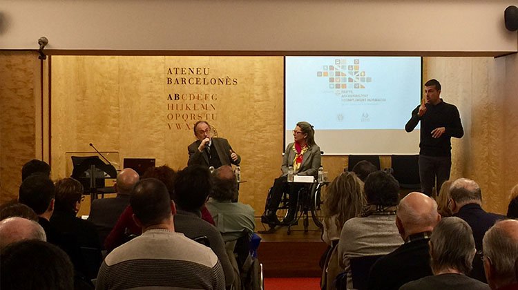 La Jornada que se celebró el pasado 19 de diciembre en el Ateneu Barcelonès, fue inaugurada por el presidente del Consell de l’Advocacia Catalana y decano del Colegio de Abogados de Girona, Carles McCragh y la presidenta de COCEMFE Barcelona, Ma. Pilar Díaz. El presidente del Consell, Carles McCragh, considera que «la accesibilidad es una cuestión de derechos humanos y la falta de la misma una discriminación y violación de los derechos de las personas con discapacidad». Para McCragh «si la ciudadanía no tiene un fácil acceso a todos los instrumentos de la justicia, y el primero de ellos los edificios y el lugar donde se imparte, es en este umbral es donde comienza una verdadera injusticia». Es por este motivo que «la Abogacía Catalana debe trabajar para que todos los edificios judiciales y los Colegios de Abogados sean accesibles para toda la ciudadanía», concluyó.
