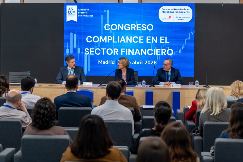 La función de Compliance cada vez juega un papel más importante en la gestión de los riegos de las entidades financieras, teniendo como objetivo fundamental su protección y asegurar al consejo de administración que la actividad se realiza dentro del marco regulatorio y de su mandato de apetito al riesgo. Esta es la principal conclusión del I Congreso de Compliance en el Sector Financiero, organizado por la Asociación Española de Compliance (ASCOM) y la Cátedra de Derecho de los Mercados Financieros de la Universidad CEU San Pablo, que ha reunido en Madrid a responsables de cumplimiento de banca, mercados de valores, seguros y prevención del blanqueo de capitales, junto a representantes institucionales.