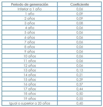 La base imponible de este impuesto está constituida por el incremento del valor de los terrenos, puesto de manifiesto en el momento del devengo y experimentado a lo largo de un periodo máximo de 20 años, y se determinará multiplicando el valor del terreno en el momento del devengo, por el coeficiente que corresponda al periodo de generación del incremento de valor, aprobados por el ayuntamiento, sin que pueda exceder de los límites siguientes: