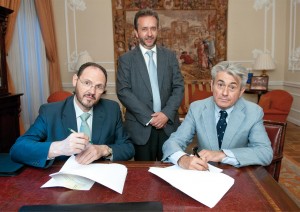 En la foto: de izda a derecha: José Antonio Gonzalo Angulo, presidente del Instituto de Contabilidad y Auditoría de Cuentas Carlos Puig de Travy, presidente del Registro de Economistas Auditores del CGCEE y