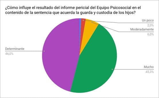 De la II Oleada del Observatorio se infiere el enorme peso y valor que el órgano judicial confiere a los informes psicosociales cuando dicta sus resoluciones. Existe una abrumadora mayoría que considera que tales informes influyen “mucho” o son “determinantes” en el resultado del procedimiento. Así lo considera el 91% de los profesionales encuestados.