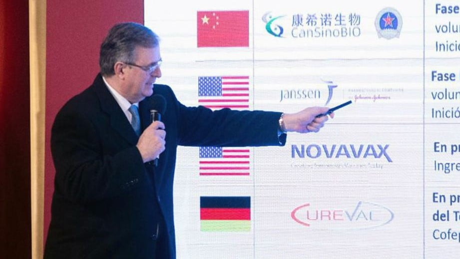 El secretario de Relaciones Exteriores, Marcelo Ebrard Casaubon, se expresó sobre los convenios que tiene México con las compañías farmacéuticas que cuentan con los desarrollos clínicos más avanzados contra COVID-19.