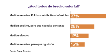 Las auditorías de brecha salarial obligatorias, una medida anunciada por el Gobierno recientemente y destinada a igualar el salario de hombres y mujeres en las empresas, no cuentan con el respaldo mayoritario de los empresarios españoles. Un 53% considera que la obligación de publicar sus sueldos es excesiva y podría influir negativamente en sus políticas retributivas y de contratación, según el informe Women In Business 2018: ¿cumplir o liderar?, elaborado por decimocuarto año por Grant Thornton.