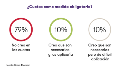 “Las cuotas son medidas contundentes y que no gozan de gran apoyo en nuestra comunidad empresarial. Pero los países donde se han aplicado, como Noruega, Italia, Francia o Bélgica, están rozando ya la paridad en el número de de hombres y mujeres en puestos de dirección”, señala Mar García Ramos, socia de Grant Thornton.