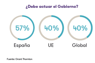 El nuevo informe de Grant Thornton indaga en el papel de las empresas y el del Gobierno a la hora de aumentar el número de directivas en España. Un 57% de empresarios españoles desearía que el Gobierno impulsara más medidas legislativas de promoción de la mujer en la dirección. Este apetito por una mayor intervención estatal es ampliamente mayor que en la Unión Europea (40%) y que a nivel global (40%).