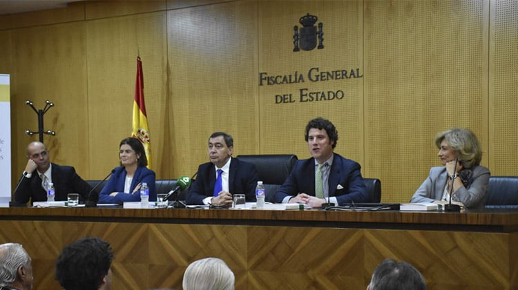 Julián Sánchez Melgar, Fiscal General del Estado, Carmen Sánchez- Cortés, Secretaria de Estado de Justicia, Rosalina Díaz Valcárcel, presidenta de Wolters Kluwer España, José Manuel Maza Muriel, abogado, y Carlos Gómez- Jara Díez, abogado y profesor de Derecho Penal, presentaron ayer jueves la obra que recoge la tesis doctoral del tristemente fallecido José Manuel Maza Martín.