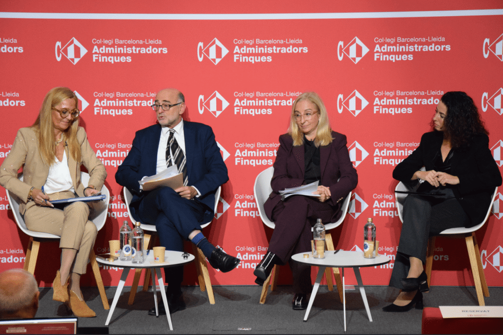 La mesa, moderada por Mar Escutia, contó con la participación del catedrático Josep Ferrer, especialista en Derecho Civil; Arantxa Goenaga, abogada experta en derecho inmobiliario y socia de AF Legis; y Mercedes Blanco, CEO de Vecinos Felices y vocal de la junta de gobierno de COAPI Barcelona.