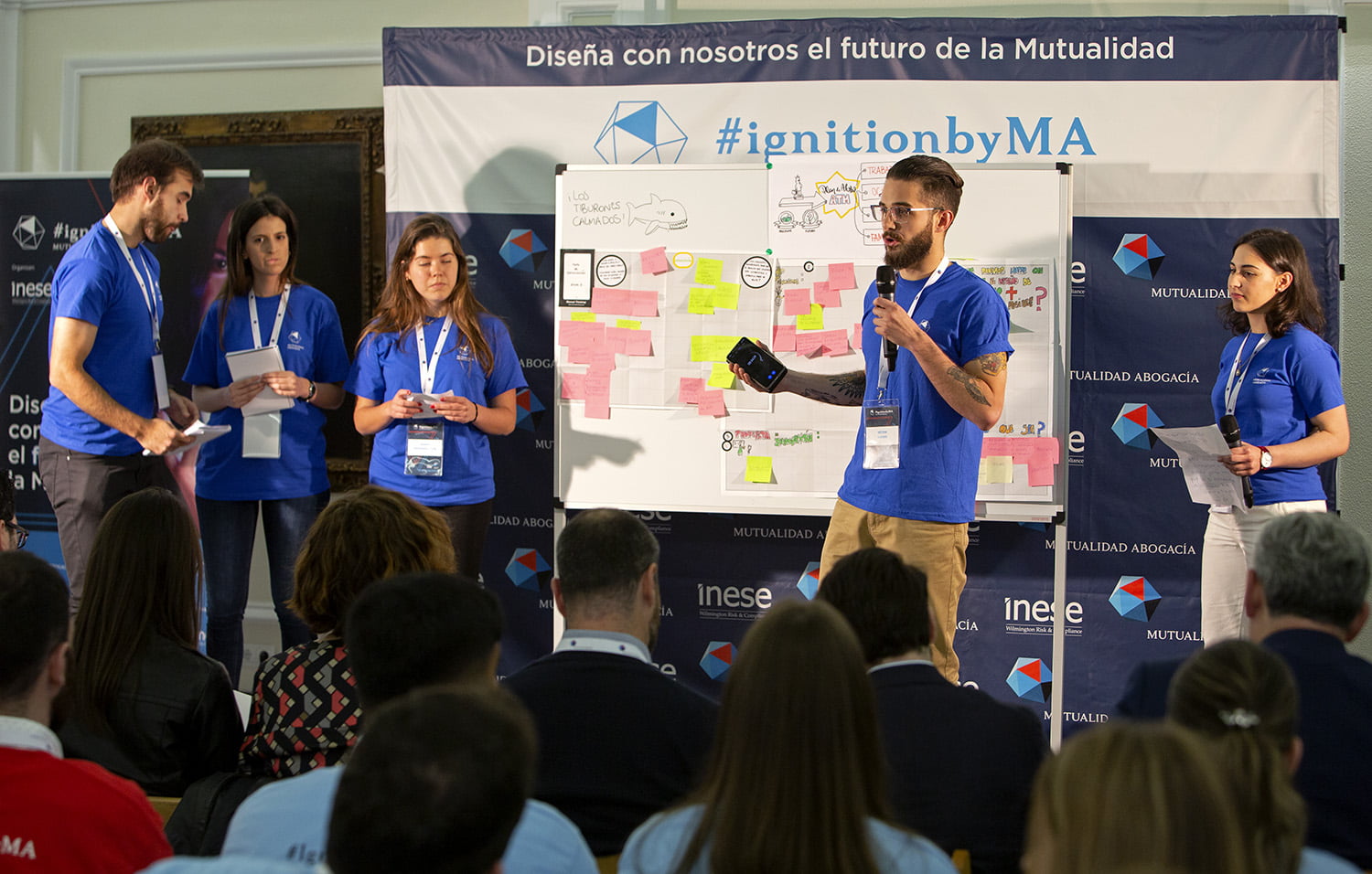 Este fue el espíritu con el que se desarrollaron las distintas fases del trabajo en equipo, cuyo catalizador, planteado como RETO, se concretó en “¿Cómo ahorrarías con la Mutualidad?, inventa tu Seguro”, de la que salieron ideas que servirán para hacer propuestas dirigidas al ahorro de los más jóvenes.