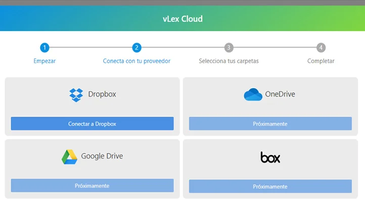 vLex Cloud es una solución integral para la gestión del conocimiento muy sencilla; a partir de un servicio de almacenamiento cloud como Dropbox, Google Drive o OneDrive el usuario puede subir documentos a vLex de manera que cuando haga búsquedas los encuentre junto con los de vLex, en el momento en que los necesita.